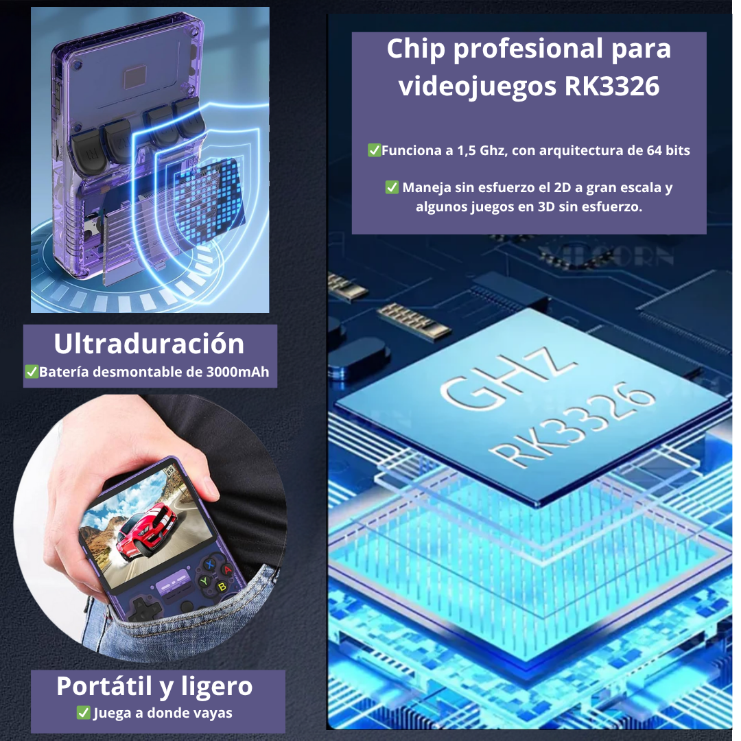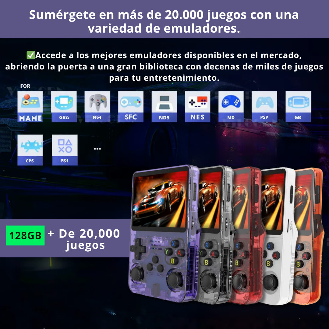 • Pantalla IPS de 3.5 pulgadas: Equipada con una pantalla IPS de 3.5 pulgadas, esta consola ofrece una visualización nítida y vibrante para una experiencia de juego superior.