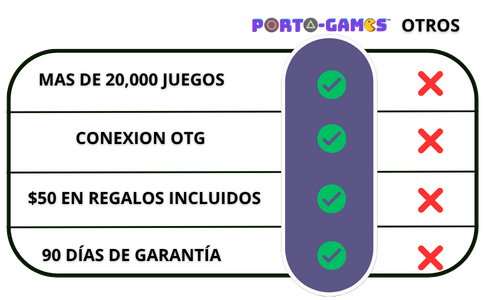 ¿Quieres jugar con amigos o compartir tus juegos favoritos en tu TV? Portagames™ te permite conectar tu consola en tu TV, o un control con OTG para competir, colaborar o simplemente recordar juntos aquellos tiempos donde todo era más fácil.